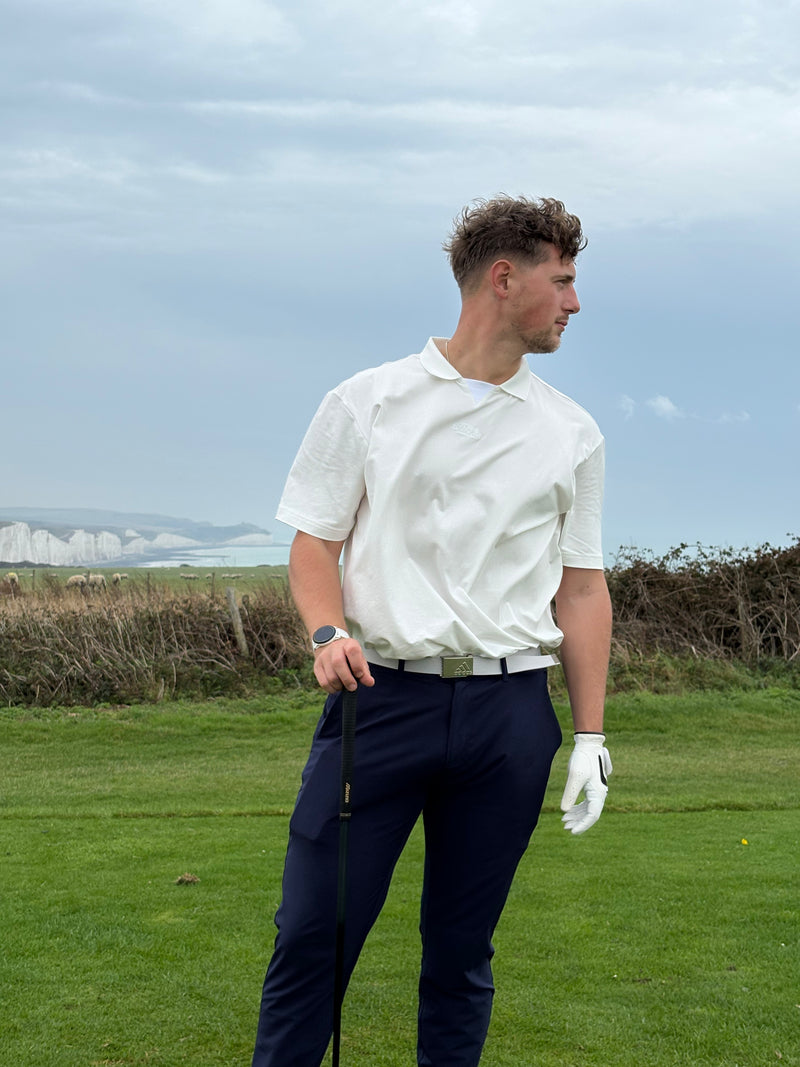A fresh take on a vintage staple, the cream Relaxed Fit Shirt from Sticks Golf captures everything we love about traditional golf wear, refined through a modern lens. Cut from an incredibly soft cotton spandex blend, the shirt drapes effortlessly while allowing for natural stretch and ease of movement. The soft neutral tone, combined with a buttonless collar and relaxed tailoring, gives this piece a laid-back elegance that feels equally at home on the green or in your everyday wardrobe. It is golfwear reimagined for the present day.